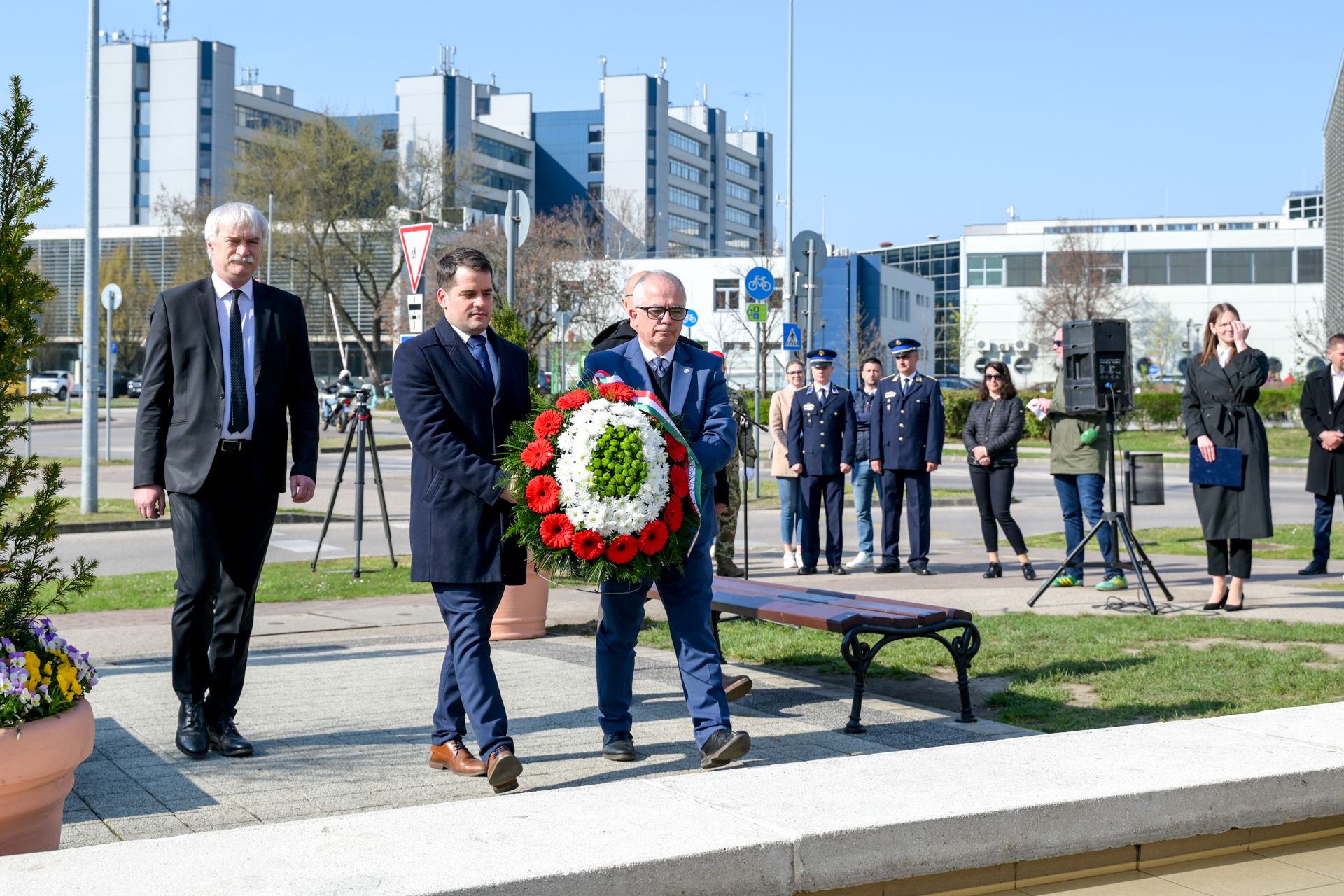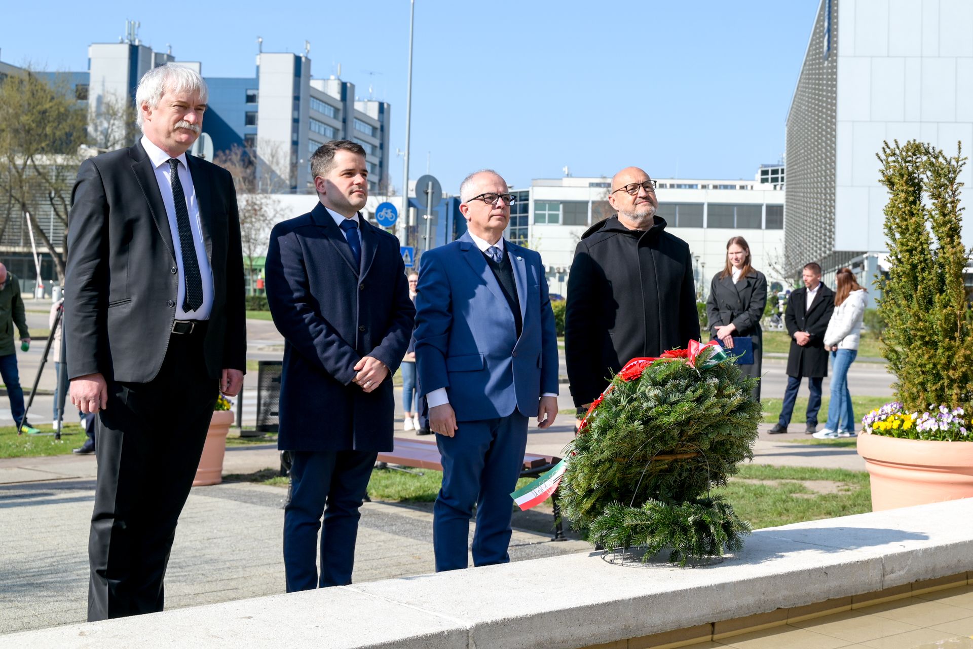 Az ünnepség zárásaként koszorút helyezett el az emlékműnél Sütheő László, az Észak-Dunántúli Vízügyi Igazgatóság műszaki igazgatóhelyettese, Rácz Attila, a Pannon-Víz Zrt. elnök-vezérigazgatója, Kósa Roland, Győr Megyei Jogú Város alpolgármestere és Józsa Tamás, a Győri SZC Hild József Építőipari Technikum igazgatója.