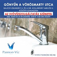 IVÓVÍZELLÁTÁS SZÜNETEL: Gönyűn a Vörösmarty utcában