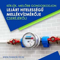 Kérjük, mielőbb gondoskodjon lejárt hitelességű mellékvízmérője cseréjéről!