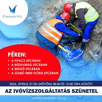 Társaságunk hálózatbővítési munkákhoz kapcsolódó zárásokat végez 2026. április 27-én, hétfőn Pér településen az ivóvízhálózaton. A munkavégzés ideje alatt az ivóvízszolgáltatás szünetelésére lehet számítani az alábbi utcákban... Részletek itt...