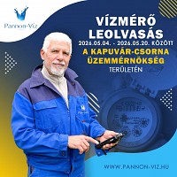 Értesítjük Tisztelt Felhasználóinkat, hogy a Pannon-Víz Zrt. Kapuvár-Csorna Üzemmérnökségének területén a vízminőség megóvása érdekében vízhálózat-karbantartási munkákat végez társaságunk az alábbi helyszíneken és időpontokban... Részletek itt...