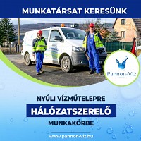 Munkatársat keresünk a PANNON-VÍZ Zrt. Nyúli vízműtelepére hálózatszerelő munkakörbe. Részletek itt...