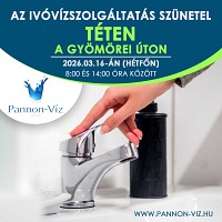 Társaságunk 2026. március 16-án (hétfőn) ivóvízhálózat rekonstrukciós munkákat végez Tét településen. Részletek itt...