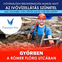 Társaságunk 2025. december 15-én (hétfőn) ivóvízhálózat rekonstrukciós munkákat végez Győrben a Rómer Flóris utcában. Részletek itt...