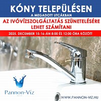 IVÓVÍZELLÁTÁS SZÜNETEL: Kóny településen